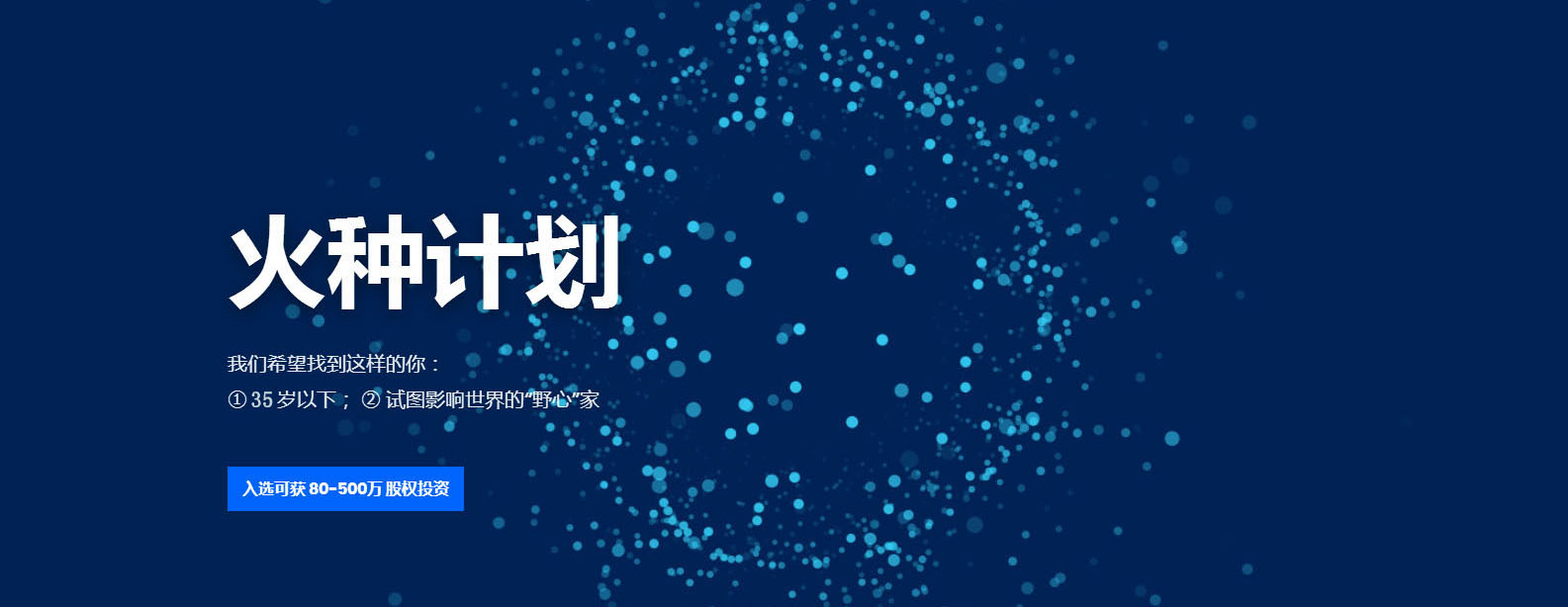 火种计划由总规模2亿元(共6期,2-3年内完成投资),项目的来源依靠公开征集。每半年进行一次项目评审。发掘具有创新性和高成长潜力的项目进行股权投资,其中,对每期评审中获得前三名的优秀项目,根据项目情况进行80-500万的股权投资。