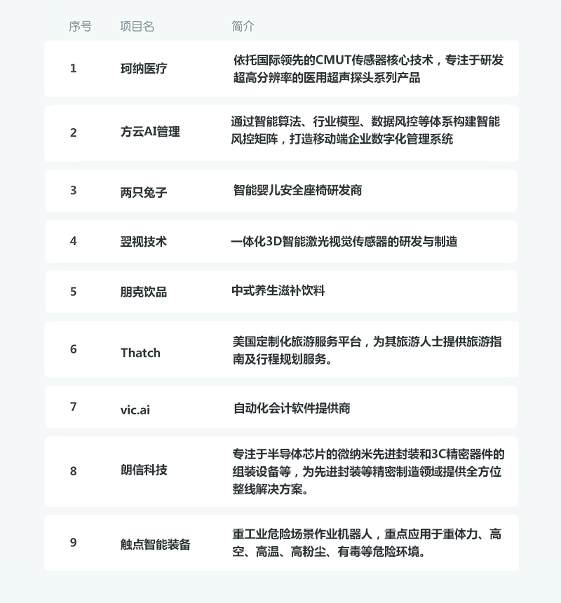 3、复申:投资人通过闭门路演,并选出入围项目15个,若优秀项目数量不足,将顺延至下一期。